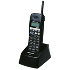 looks and feels like The phone has good volume, excellent voice quality, and freedom from interference even in a very "electronically-live" environment. Range is several blocks in a typical suburban environment, or several hundred feet inside an office building. For maximum range, the base should be mounted as high as possible. (We have customers who have installed KX-TD7890 bases in bell towers, and just below the ceiling of an airplane hanger.) The handset sits upright in a charging cradle like the 7880 and 7890, but there is no compartment for charging a second battery pack, and no provision for wall-mounting. The phone is available in black and white. New features include the ability to select up to 12 lines, message-waiting indication, LCD display, vibrator alert and headset jack. Auto Scanning automatically searches through 30 channels for the clearest one, while "Sound Charger" technology helps filter out background noise and enhance sound quality. When the KX-T7885 is connected to a Panasonic phone system, the phone’s flexible keys with indicators can be assigned to access up to 12 outside lines, or system features. The buttons access 4 lines at a time, but their functions can be easily shifted to handle different groups of lines. The display stupidly identifies the lines as "CO1,"