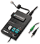 adapter that allows easy switching between headset and handset, plus muting, volume control, and custom adjustments for your particular phone. The adapter plugs into the handset jack on your phone, and both the handset and headset then plug into the adapter. Some adapters go next to the phone, and others go underneath.