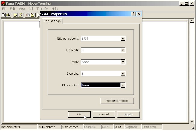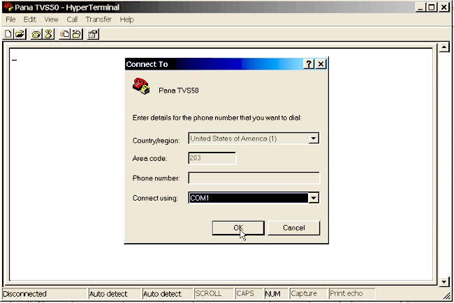 bottom section, select Connect Using COM 1 (or whatever port you are