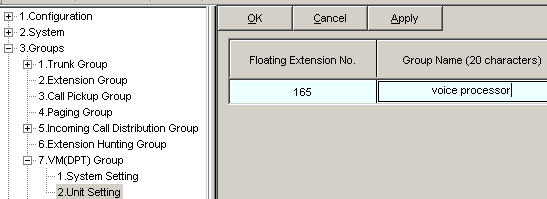 Extension Number and "voice processor" under Group Name.